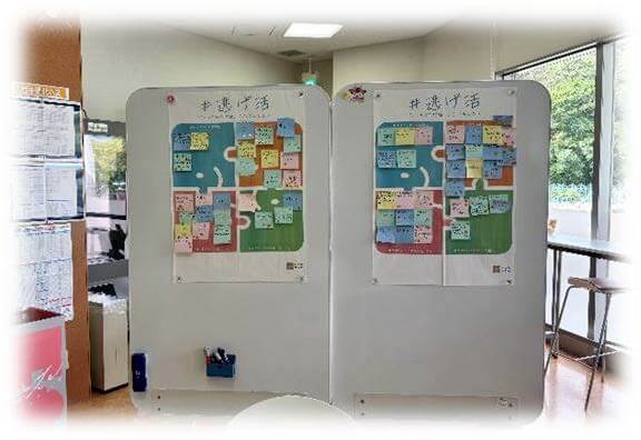 ウエルビーイングフェアで行った「逃げ活」も、10/6(月)~10/10(金)図書館1階学生ホールにて掲示しておりました。ご覧になっていただきありがとうございました。